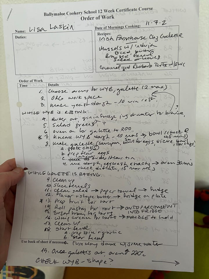 You all in the States thought that I was going to The Great British Baking Show over here but consider instead Ballymaloe: The Musical! SO much more going on, right? Of course it is the hero’s journey - all 66 of us - and has an absolutely adored beautiful and compelling leading lady and equally revered witty male counterpart, and some sage elders dispensing witchery and wisdom. There’s the Greek Chorus of office staff and farm workers and of course the many character bits from our teachers, each a star turn in their own right. Will the cows have a role? Absolutely! That murderous rooster? He’ll steal the show!